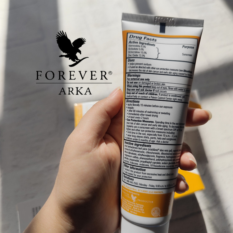 🔸ضد آفتاب فوراور با ترکیب آلوئه ورا خالص، ترکیبات معدنی برای محافظت از پوست در برابر اشعه (زینک اکسید)، SPF 30 و مقاومت 80 دقیقه ای در برابر رطوبت یکی از بهترین ضد آفتاب های دنیاست که محافظت کاملی از پوست در برابر اشعه مضر خورشیدی میکند.