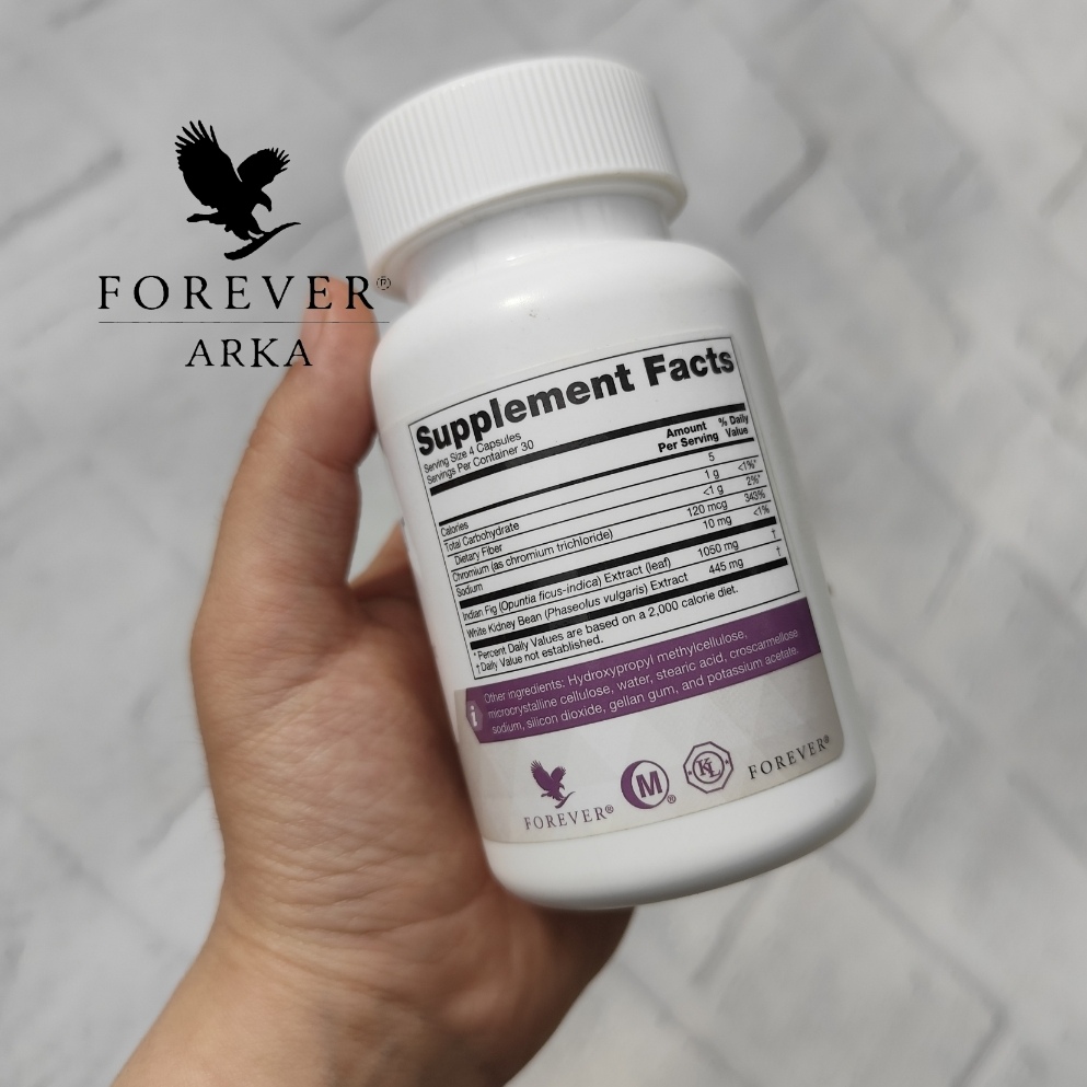 این مکمل فوق العاده، دو ماده موثر را در خود گنجانده است که به کاهش جذب کالری های موجود در چربی ها و کربوهیدرات ها کمک می کنند. یکی از این دو عنصر، فیبر منحصر به فرد برای جذب چربی است که از گیاه کاکتوس خاردار (با نام علمی Urostigma) به دست می آید. نام دیگر این میوه منحصر به فرد، انجیر هندی میباشد که در مقایسه با سایر گیاهان، توانایی بسیار بالایی در چربی سوزی بدن دارد. ماده منحصر به فرد دیگر که در مکمل غذایی فوراِور لین گنجانده شده، پروتئینی ویژه است که از دانه های گیاه لوبیا چیتی (با نام علمی فاسیلوس وولگاریس) به دست آمده است. این پروتئین منحصر به فرد، با ممانعت از فعالیت آنزیم هایی که نشاسته را به قند تبدیل می کنند، جذب قند در روده کوچک را کند می نماید.